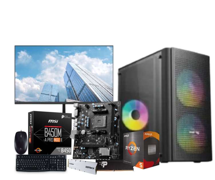 The AMD Ryzen 5 5600 Gaming Desktop PC is a powerful and reasonably priced machine for gamers. It includes the AMD Ryzen 5 5600 Processor, a 6-core, 12-thread CPU capable of handling any game or program. The MSI B450M-A PRO MAX II Motherboard Boasts a sleek and beautiful design and supports the newest AMD AM4 CPUs. The PATRIOT Signature Line 8GB DDR4 3200MHz RAM and the AITC KINGSMAN KM600 256GB M.2 NVMe PCIe SSD give your system quick and smooth performance. The Value-Top VT-M200 Mid Tower Micro ATX case features a magnificent RGB lighting effect as well as a large interior for simple installation.The Dahua LM22-B201S 21.45'' IPS 100Hz FHD monitor has a beautiful, sharp display, a wide viewing angle, and a reduced blue light mode. The AMD Ryzen 5 5600 Gaming Desktop PC is a good solution for those with a wide range of computing demands.