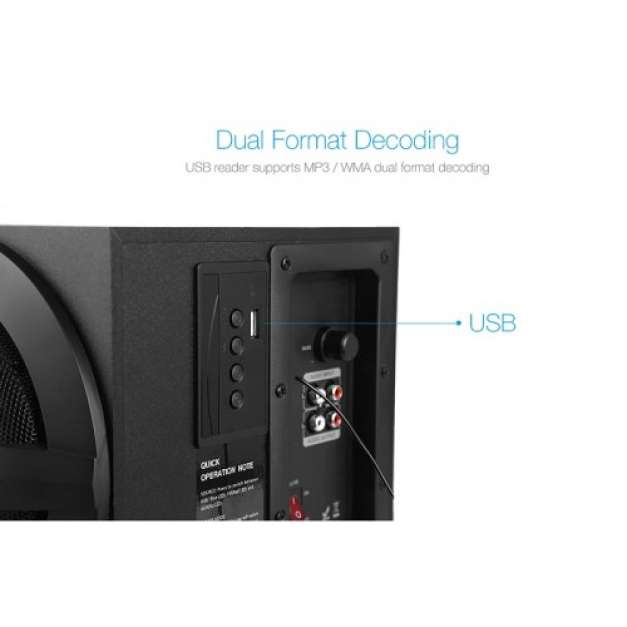 The F&D A140X 2.1, Bluetooth Speaker With may deliver a broader and better sound whether watching movies, playing games, or listening to music. These speakers' 2.1-channel design produces a balanced and pleasing sound. The F&D A140X 2.1 Channel Multimedia Bluetooth Speaker contains a 3′′ full range driver for satellite speakers. It includes a 4′′ heavy-duty subwoofer speaker as well as a heavy-duty aluminum satellite grill. This speaker has an innovative automated multi-color LED. Its Bluetooth 4.0 model can stream audio. USB reader that can decode MP3/WMA dual formats. For a continuous digital FM experience, use better PLL technology. There are volume and bass controls on the side panel, as well as FM storage for up to 100 stations. Fluorescence remote control with full functionality. It comes with a 01-year warranty.