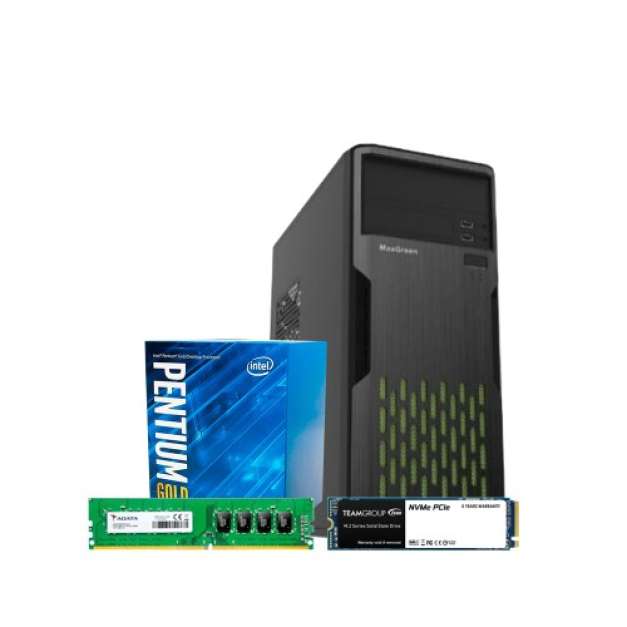 The New Intel Pentium G6400 10th Gen Special PC comes with Intel Pentium Gold G6400 10th gen Coffee Lake Processor, Gigabyte H510M H Intel 10th and 11th Gen Micro ATX Motherboard, Adata 4 GB DDR4 2666 BUS Desktop Ram, Team MP33 128GB M.2 PCIe SSD and MaxGreen 2810BG ATX Casing