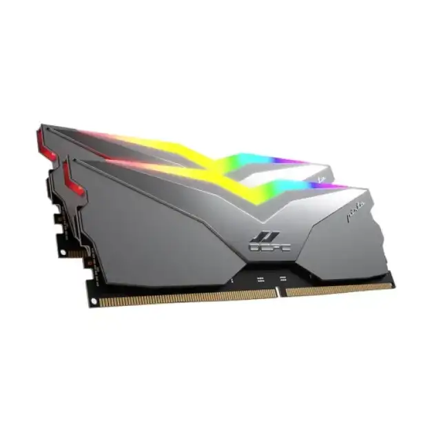 The OCPC PISTA 16GB DDR5 6000MHz CL38 RGB Desktop RAM is designed for high-performance computing and gaming. This unbuffered DDR5 module, with a 16GB capacity, has an impressive tested speed of 6000MHz, ensuring fast data processing and smooth multitasking. Its tested latency of CL38-48-48-96 improves performance by reducing delays and increasing system responsiveness. This Gaming RAM operates at a tested voltage of 1.35V, resulting in efficient power consumption and improved overall system stability and longevity. The OCPC PISTA DDR5 RAM includes a heatsink to effectively dissipate heat, ensuring peak performance during intensive computing tasks and extended gaming sessions. Furthermore, the module includes vibrant RGB lighting, which adds a visually appealing element to any desktop setup. This OCPC PISTA 16GB DDR5 6000MHz CL38 RGB Desktop RAM is non-ECC, which prioritizes performance over error checking overhead, making it an excellent choice for gamers and power users. The addition of RGB lighting not only improves the module's visual appeal, but also allows users to customize the look of their system to their liking. The advanced heatsink design keeps the module cool even under high loads, preventing thermal throttling and maintaining consistent performance. The OCPC PISTA 16GB DDR5 6000MHz CL38 RGB Desktop RAM is a dependable and powerful upgrade for any desktop computer, thanks to its high speed, low latency, and attractive design.