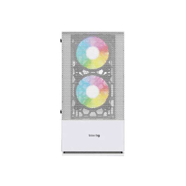Value Top VT-B701-W Micro ATX Gaming Case is an White-colored mini tower gaming case for those who prefer a minimalist design. This casing is a perfect blend of great visual and portability and performance. Since this is an mini tower casing It only supports Micro-ATX motherboard. It has 1 x USB 3.0 and 2 x USB 2.0 ports at the topside in the front. The side also has 1 x HD Audio-supported Audio Port. The supported Fan Size of these casing is, This gaming casing comes with 3 x 120mm 3-Color RGB Static Fan. Two 120mm fan is located at the front and one 120 mm RGB fan is located at the back. It has a transparent Side Window at the left and the Default power supply is located at the bottom. This White colored casing also has a magnetic dust cover at the front side. The dimensions of this casing is 325 x 200 x 380mm. Value Top VT-B701-W offers no warranty.