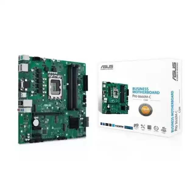 ASUS Pro B660M-C-CSM 12th Gen Motherboard provides enhanced features to smooth your IT operations, including comprehensive system protection, 24/7 stability and reliability and an improved management suite for easier customization. Known as the world's biggest and best-known motherboard brand, ASUS provides world-class after-sales service and guaranteed long-term availability to maximize your investment over the product life cycle and offers a high-quality, TCO-optimized solution for your business computing-needs.