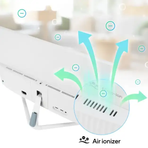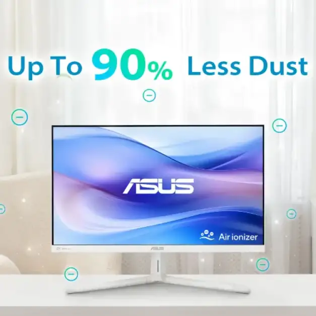 The Asus VU249HFI-W 24" Eye Care Monitor's integrated air ionizer can remove up to 90%* of airborne dust in three hours, making your personal area cleaner and fresher. Because it purifies the air directly in front of the viewer, the ionizer is ideal for persons who spend a lot of time in front of a television. This allows for comfortable productivity and entertainment. It has a 1 m³ effective coverage area. The Asus Monitor's Nano-ion technology effectively eliminates air pollutants by employing negative ions without the need for filters.