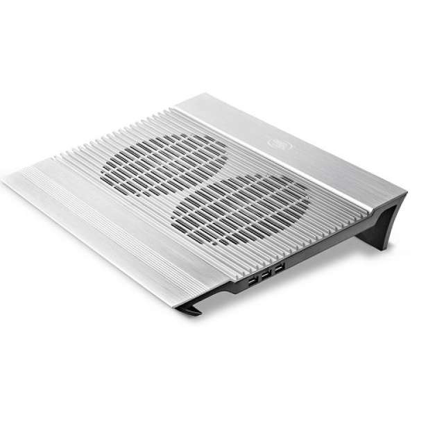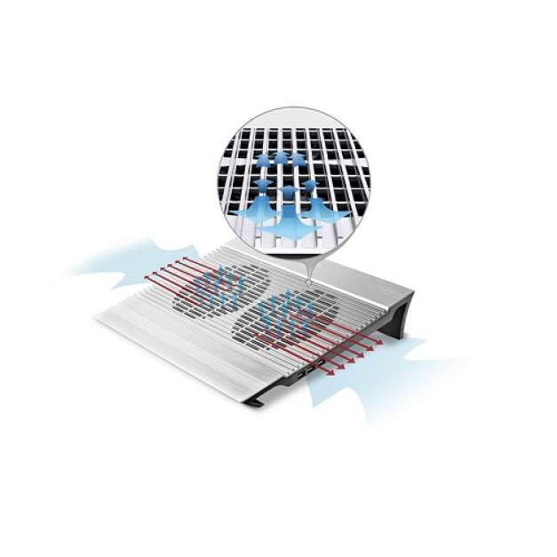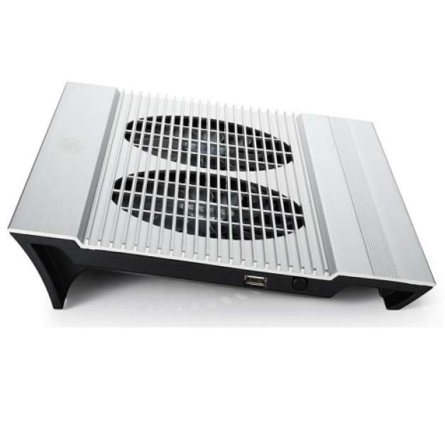 The DeepCool N8 Laptop Cooler has an extruded aluminum panel construction for efficient heat dissipation. It contains dual 140 mm fans that produce high volume airflow to achieve great cooling performance. This cooler features a fantastic air intake design that provides ideal airflow for laptop cooling, as well as 4x USB connections. The N8 laptop cooler is 380x278x55mm in total. It is a hydro-bearing type. This cooler has a 5VDC input and an operating voltage of 4.5 VDC. The DeepCool N8 Laptop Cooler has a rated current of 0.3±10%A. It has a power input of 1.5W and a fan speed of 1000±10%RPM. The maximum airflow is 94.7CFM, and the noise level is 25.1dB(A). The DeepCool N8 Laptop Cooler comes with a 01-year warranty.