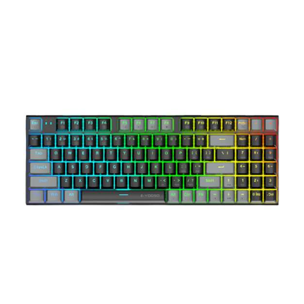 Innovative 94 key new layout does not take up space, Full key hot swap support 3 pins/5 pins switch. Double soundproofing Double sound insulation cotton reduces noise. Kay line separation Elbow Type-C wire. Metal panel sandblasted metal. Hybrid Keycaps are good-looking no oi. Key no-rush, one-step faster response .20 groups of RGB backlight, multi-mode switching, color adjustable. Independent numeric keypad for office games.