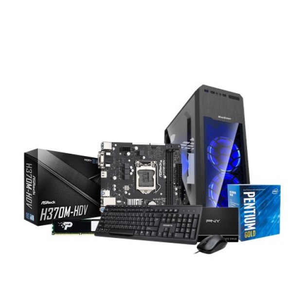 The Flash Sale Pentium Gold G5420 8th Gen Special PC features Intel Pentium Gold G5420 8th Gen Coffee Lake Processor. Intel Pentium GOLD processors are great options for value-segment buyers who need basic functionality at an affordable price. Leveraging Intel’s latest, most advanced 14nm process technology and optimizations, the processors are ideal for everyday computing like basic productivity, browsing visually stunning webpages, streaming 4K Ultra HD video, and editing photos. This special PC has ASRock H370M-HDV 8th and 9th Gen Micro ATX Motherboard inside it. ASRock H370M-HDV Motherboard has all three types of most used graphics output connectors. It supports D-Sub, DVI-D, HDMI combo. It also has an HDMI port which supports 4k resolution. It may need the help of integrated graphics though. You can use 3 monitors at the same time without installing another graphics card.  PATRIOT Signature Line 4GB DDR4 2666MHZ HEATSINK Desktop RAM and PNY CS900 120GB 2.5" SATA III Internal SSD have been installed for fast performance. It will get your work done faster than you want. All these special features have been bundled in MaxGreen G563BL Window ATX Casing. It will take the outlook of your build to the next level with its half-transparent panel on the left side. It has 2x12cm 15xLeds Ring Blue LED fans in the front panel. It really looks pretty stunning. This special PC also includes Gigabyte KM6300 USB Multimedia Keyboard Mouse Combo. No need for any additional installation, just plug in the computer to use. The convenient hotkeys offer you instant media control and easy access to the most common tools. The comfortable appearance allows consumers to use it for a long time. Precise 1000dpi optical sensor provides accurate and smooth tracking on the table. Adjustable keyboard tilt by extending the feet stands allows you to find personal optimal wrist position.