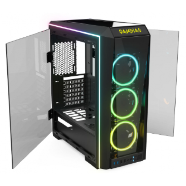 TALOS P1A is a premium mid –tower case, larger than general mid-tower case with 2 tempered glass side-swing doors, eye-catching rainbow RGB lighting fans, and RGB lighting motherboard synchronization (5V 3-pin). Sleek tempered glass panels fully display all components and lead the user to a brand new modding experience!