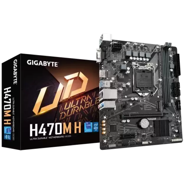 The GIGABYTE H470M H Micro ATX Motherboard has Intel Ultra Durable with GbE LAN, Anti-Sulfur Resistor, and Smart Fan 5. It supports 11th/10th Generation Intel Core Processors, Dual Channel Non-ECC Unbuffered DDR4, and 2 DIMMs. 8-Channel HD Audio with High-Quality Audio Capacitors This Motherboard has NVMe PCIe Gen3 x4 2280 M.2 Connector and GbE LAN with Bandwidth Management. Smart Fan 5 has Multiple Temperature Sensors and Hybrid Fan Headers with FAN STOP. GIGABYTE APP Center, Anti-Sulfur Resistor Design, Simple and Easy to Use GbE LAN includes a network bandwidth management program that helps to lower network latency and maintain low ping times to provide improved responsiveness in busy LAN scenarios.