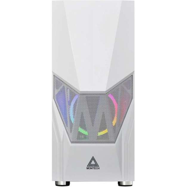 Montech Fighter 500 ATX Mid Tower Gaming Case featured with High Airflow, 4 Rainbow Led Fans pre-installed and Full Tempered Glass Side Panel. This gaming case designed with "M" design in the front panel that provides an exquisite look.
