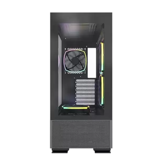 Thanks to the integrated front and side panels, users can see their whole interior at first sight. The fine mesh that covers the underside of the front panel extends to the PSU chamber with pre-installed ARGB fans that enhance the beauty of this masterpiece.