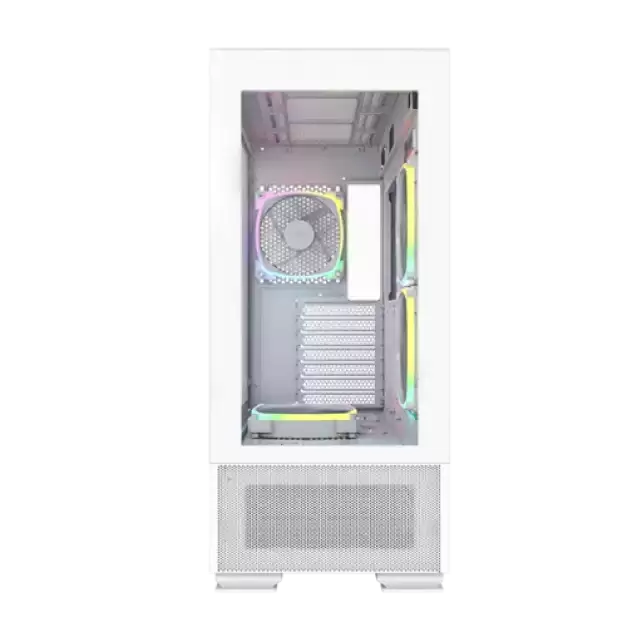 Thanks to the integrated front and side panels, users can see their whole interior at first sight. The fine mesh that covers the underside of the front panel extends to the PSU chamber with pre-installed ARGB fans that enhance the beauty of this masterpiece.