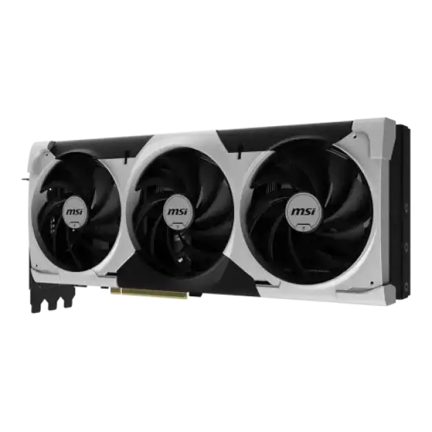 The MSI GeForce RTX 5090 32G VENTUS 3X OC graphics card is based on NVIDIA's Blackwell technology. It has 32GB of GDDR7 memory, a lightning-fast 512-bit memory bus, 28 Gbps speed, 21760 CUDA cores, and DLSS 4 for ground-breaking AI-enhanced graphics. The MSI GeForce RTX 5090 32G VENTUS 3X OC GPU delivers future-proof performance for future applications thanks to its PCI Express Gen 5 x16 interface, which ensures smooth compatibility with the most modern systems. The advanced HYPER FROZR thermal design incorporates innovative cooling technologies to provide silent operation and optimal heat management. The STORMFORCE fan, which comes with the MSI GeForce RTX 5090 32G VENTUS 3X OC graphics card, has seven precisely designed blades with circular arcs and claw texturing to deliver excellent airflow. An integrated Vapor Chamber efficiently transfers heat from the GPU and VRAM to the square-shaped Core Pipes. The Core Pipes have filled fins to improve heat dissipation. The V-shaped cuts in the Air Antegrade Fin 2.0, which increase thermal efficiency, and the skillfully designed wave edges in the Wave Curved 4.0 system of the RTX 50 Series GPU provide superior airflow and turbulence reduction. This MSI GeForce RTX 5090 32G VENTUS 3X OC GPU supports up to four monitors and has three DisplayPort 2.1a outputs, an HDMI 2.1b connection, 4K at 120Hz HDR, 8K at 60Hz HDR, and a customizable refresh rate for an immersive experience. Cooling is enhanced and structural strength is added with a metal backplate with airflow vents and thermal pads. Dual BIOS lets you switch between silent operation and high-performance gaming. Resolutions up to 7680 x 4320 and OpenGL 4.6 are supported with the MSI GeForce RTX 5090 32G VENTUS 3X OC graphics card.