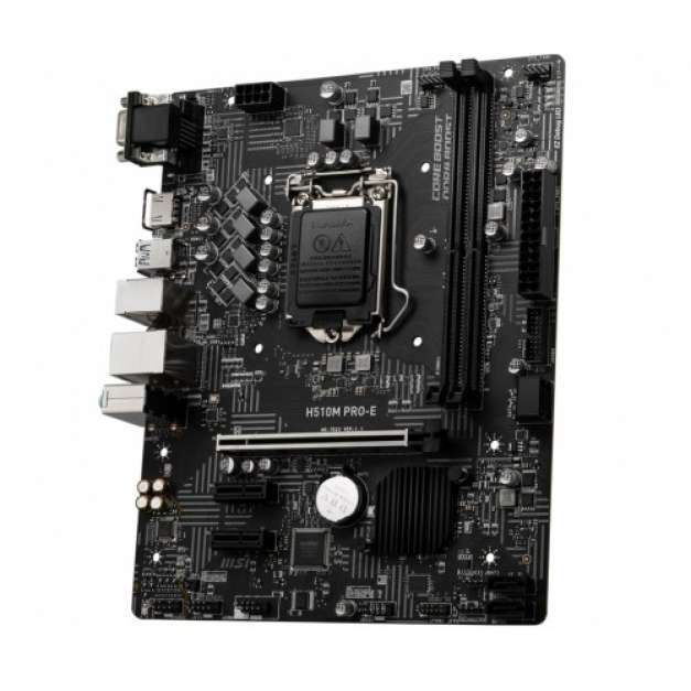 The MSI PRO series helps users work smarter by delivering an efficient and productive experience. Featuring stable functionality and high-quality assembly, PRO series motherboards provide not only optimized professional workflows but also less troubleshooting and longevity. MSI H510M PRO Intel 10th Gen and 11th Gen Mirco-ATX Motherboard supports 10th Gen Intel Core, 11th Gen Intel Core, Pentium Gold and Celeron processors for LGA 1200 socket, DDR4 Memory, up to 3200(Max) MHz. The Motherboard featured with premium layout and digital power design to support more cores and provide better performance, DDR4 Boost: Advanced technology to deliver pure data signals for the best performance and stability, Lightning Fast Experience: PCIe 4.0. It is Protecting VGA cards against bending and EMI for better performance, stability and strength. Here, MSI lightning Gen 4 PCI-E is the latest and the fastest PCI-E data transfer solution with 64GB/s of transfer bandwidth that has doubled compared to its previous generation. PCIe 4.0 maintains both backward and forward compatibility with older and newer specifications. It is Optimized by steel armor design, your motherboards can support the weight of heavy graphics cards. The Detecting CPU & GPU temperatures and automatically adjusting fan duty of system fans to a proper value by adopting MSI AI ENGINE. The latest MSI H510M PRO-E Intel 10th Gen and 11th Gen Mirco-ATX Motherboard has 03 years warranty.