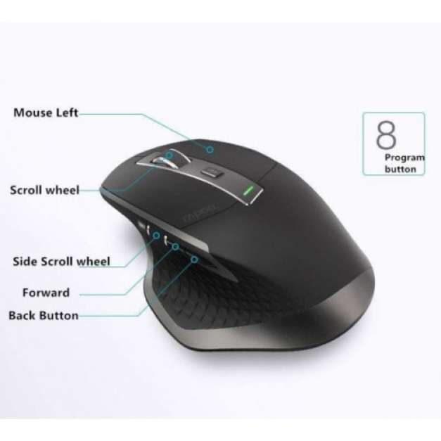 Rapoo MT750S Rechargeable Multi mode Wireless Mouse is comes with Bluetooth 3.0/4.0, 2.4G technology Transmission mode with Rechargeable 450mAH lithium battery which is included. And also you can your mouse regardless of USB port shortage or the loss of receiver. This mouse has 3200DPI(600/1200/1600/3200 adjustable). In this mouse, It's Tracking speed is about 30(inch/s)Max, 8 Programmable keys with Laser engine Working Method. The Rapoo MT750S also has 10 (g) acceleration. The smart switch between Bluetooth 3.0, 4.0 and 2.4G ensures stable wireless transmission and you can still use your mouse regardless of USB port shortage or the loss of receiver. It simultaneously connects to up to 4 devices and easily switches between them. It simplifies complicated cross-platform maneuvers and meets multi-tasking requirements. This Rechargeable wireless mouse built-in eco-friendly lithium battery, charging three hours, can be used last up to 30 days. In this mouse, the high-performance laser engine enables you to use MT750S on virtually any surface and you can enjoy a high-speed response and unrivaled accuracy. This mouse supports with macOS, IOS, android, chrome, Windows XP/ Vista/ 7 /8/ 10. This MT750S mouse comes with 02 years warranty.