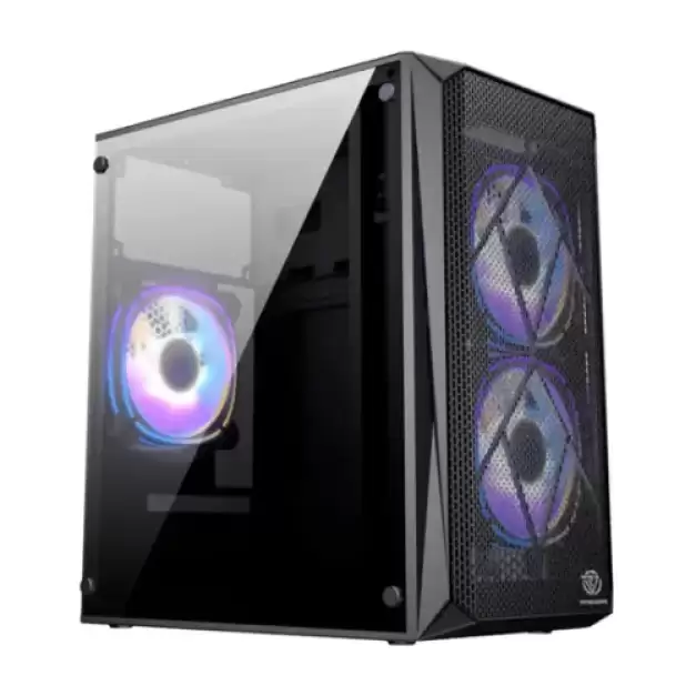 The Revenger BULLET Mini Tower RGB Gaming Case is a compact-size mini-tower case with an Acrylic Tempered Glass Side Panel. This gaming casing supports MicroATX/ Mini ITX motherboard. It has a spacious design and a fashionable appearance. It is a simple case but offers an effective design. Micro-ATX motherboards are supported by this case. there are metal covers. The side cooling air hole structure ensures smooth air circulation and optimal internal temperature control. Revenger BULLET Mini Tower RGB Gaming Case includes an I/O port with 2x USB 2.0, and 1x 3.5mm HD AUDIO port. The Revenger case comes with 3 x RGB Fan Pre-installed.