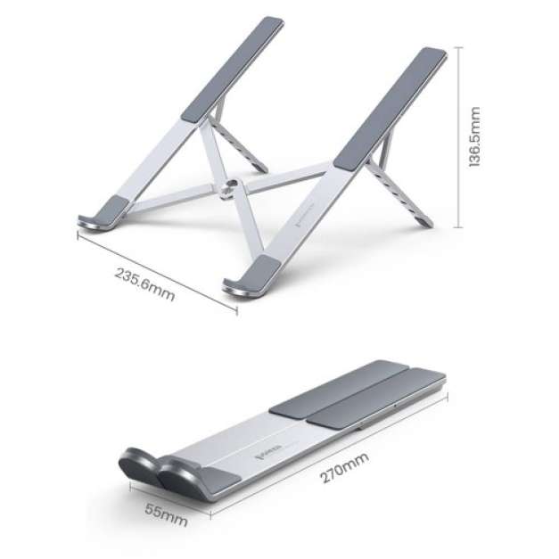 The Ugreen LP451 stand adjusts to your needs. Would you like to place a light tablet on it? Is your laptop heavy? Or perhaps a book at the proper reading angle? You can adjust the height of the stand at any time. It is stable and secure, and it can support up to 5 kg. The Ugreen LP451 stand can hold mobile devices ranging in size from 8 to 17.3 inches, such as iPads and MacBook Pros. The ergonomic design will also aid in the effective cooling of your laptop. On the go, the Ugreen LP451 stand is extremely useful. It has a folding structure, and the included bag allows you to safely conceal the folded stand. It is an excellent option for any business trip. Forget about back and neck pain while working from home or on a business trip. The stand does not slide on the tabletop due to non-slip feet and rounded edges, ensuring your safety. The aluminum surface does not scratch or bend. The Ugreen LP451 has no warranty.